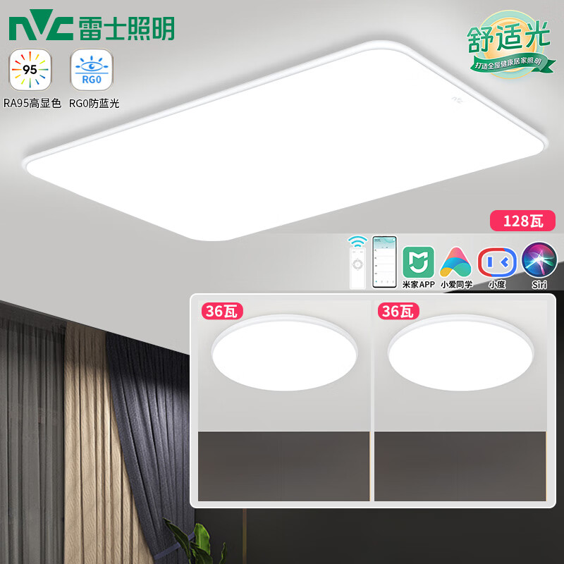 雷士(NVC)LED吸顶灯 现代简约客厅卧室餐厅小白灯具 智能舒适光灯饰白雪K价格:1811.00元!