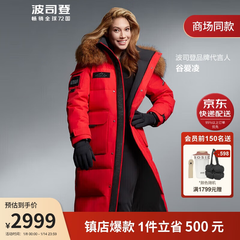 波司登(BOSIDENG)极寒2023谷爱凌同款鹅绒羽绒服男女长款宽松新年红外套B30142300价格:3099.00元!
