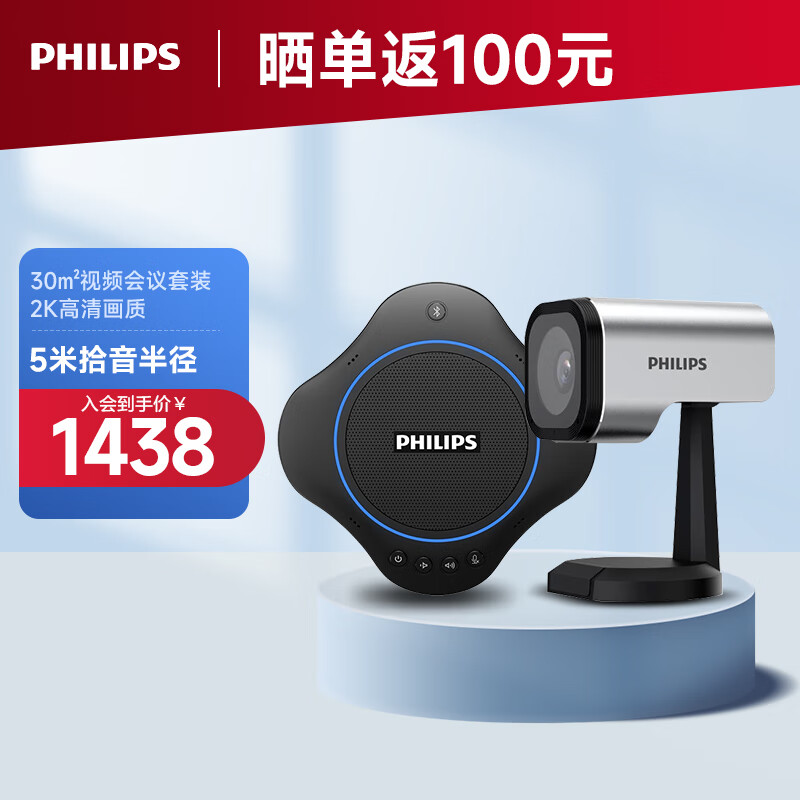 飞利浦视频会议套装/适用40㎡内解决方案/5米拾音半径全向麦克风0500+2K高清视频会议电脑教学直播摄像头0520价格:1598.00元!