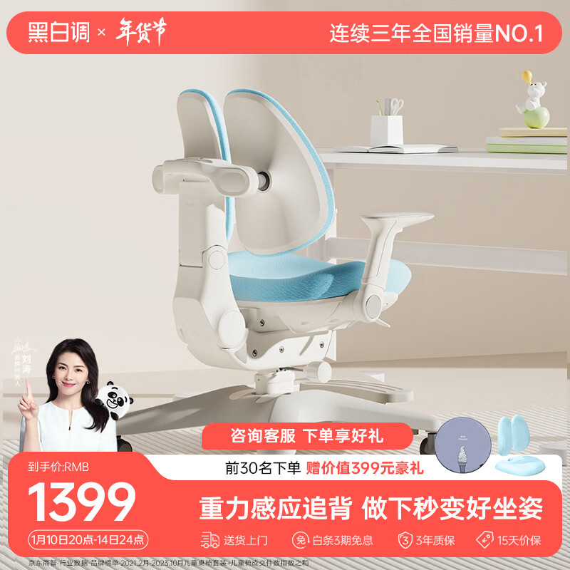 黑白调学习时光G6追背星学习椅【重力感应自动追背正姿】儿童学习椅学生椅子 蓝价格:1699.00元!