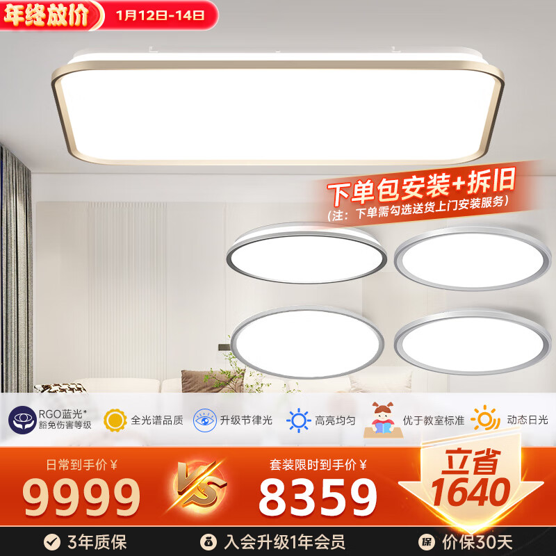 孩视宝【三室两厅】客厅大灯卧室灯护眼吸顶灯儿童房书房全光谱灯具套餐价格:9999.00元!