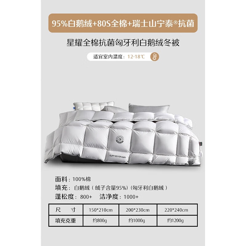 水星家纺A类95%白鹅绒进口匈牙利羽绒被冬被(1000g填充)200*230cm价格:5499.00元!
