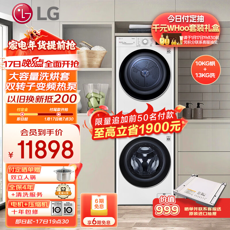 LG 容慧系列洗烘套装13kg蒸汽洗+10kg变频热泵烘 除菌除螨FCV13G4W+RH10V3AV6W(附件商品仅展示)价格:13797.00元!