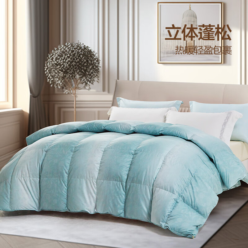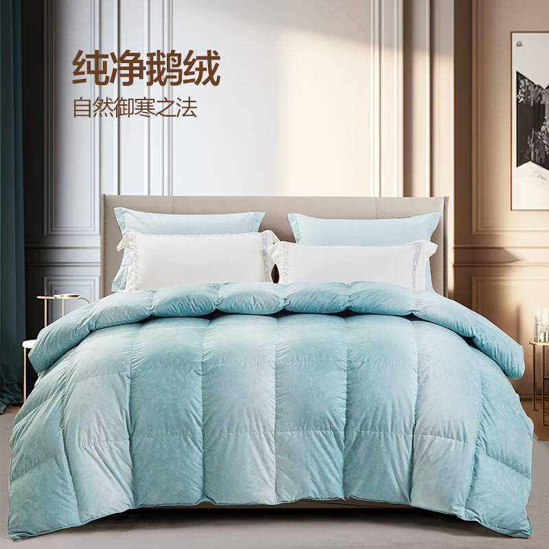 富安娜 卡布里 95%灰鹅绒羽绒被 加厚被 1100g填充 203*229cm 绿色价格:3699.00元!