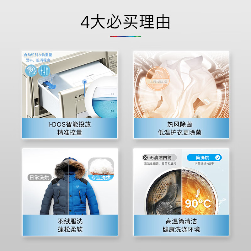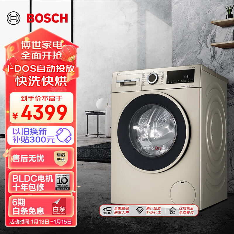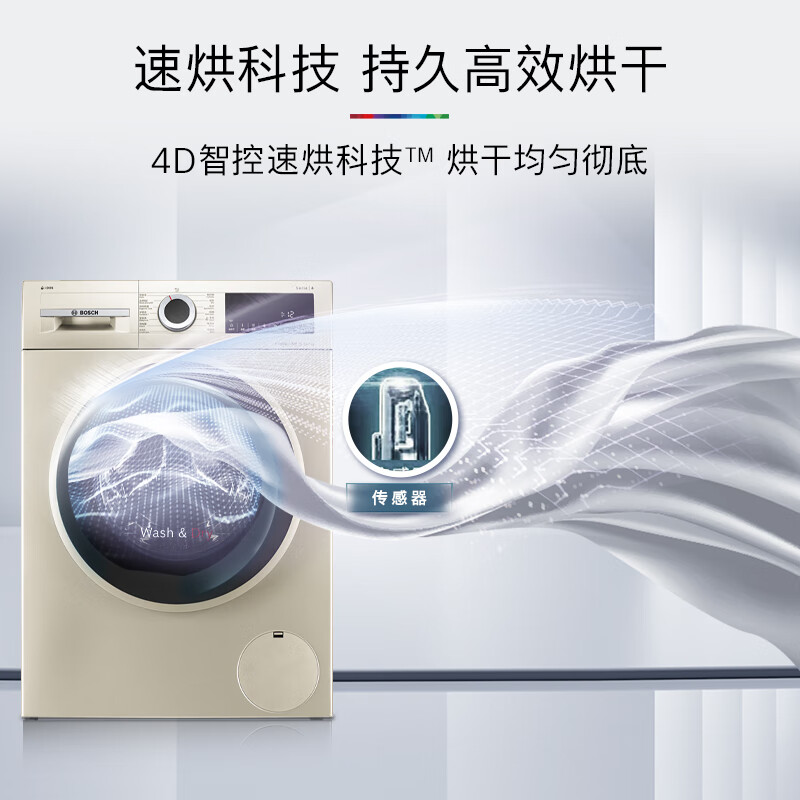 博世(BOSCH)【除菌快烘】10公斤全自动家用大容量变频滚筒洗衣机洗烘一体机智能投放 快洗快烘 WNA154A90W价格:4399.00元!