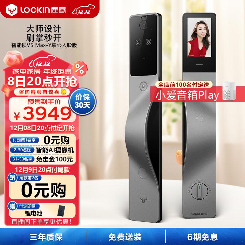 鹿客(LOOCK)掌静脉人脸识别大屏猫眼智能锁密码指纹锁 V5 Max-Y掌心人脸版 适用左开-V5 MAX-Y掌心人脸版价格:3949.00元!