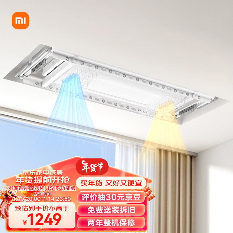 米家智能晾衣机1S多功能版 电动晾衣架除菌风烘干 隐藏阳台小米价格:1249.00元!