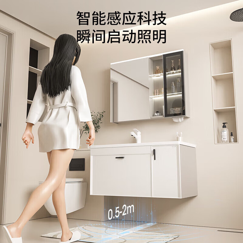 5、浴室柜带美妆架,功能齐全,有感应灯,很好看