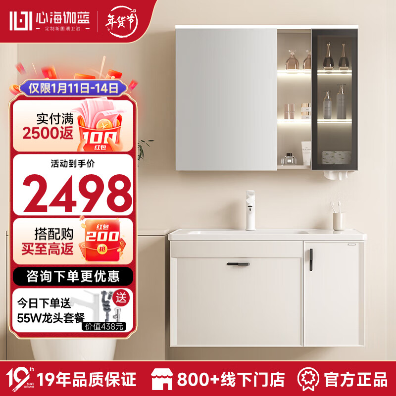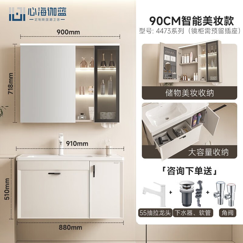 心海伽蓝(SHKL)美妆浴室柜智能卫生间陶瓷盆洗手盆洗漱台组合 4473-90cm价格:3568.00元!