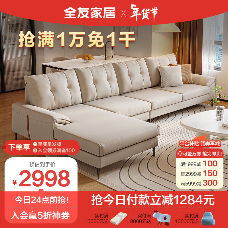 全友家居 沙发奶油风科技布沙发客厅大户型大象耳朵直排座具111037B价格:4282.86元!
