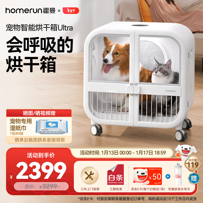 霍曼(Homerun)宠物智能烘干箱UItra 狗狗全自动吹干箱吹干机猫咪洗澡烘干机低噪价格:3299.00元!