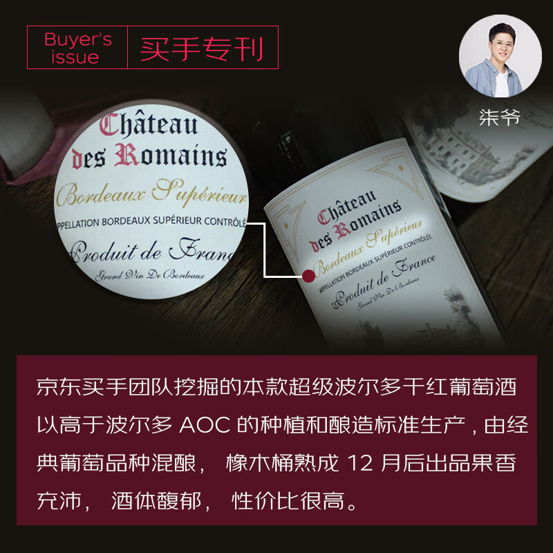 罗曼庄园(Chateau des romains)【海外直采】法国超级波尔多干红葡萄酒750ml*6整箱年份随机价格:339.00元!