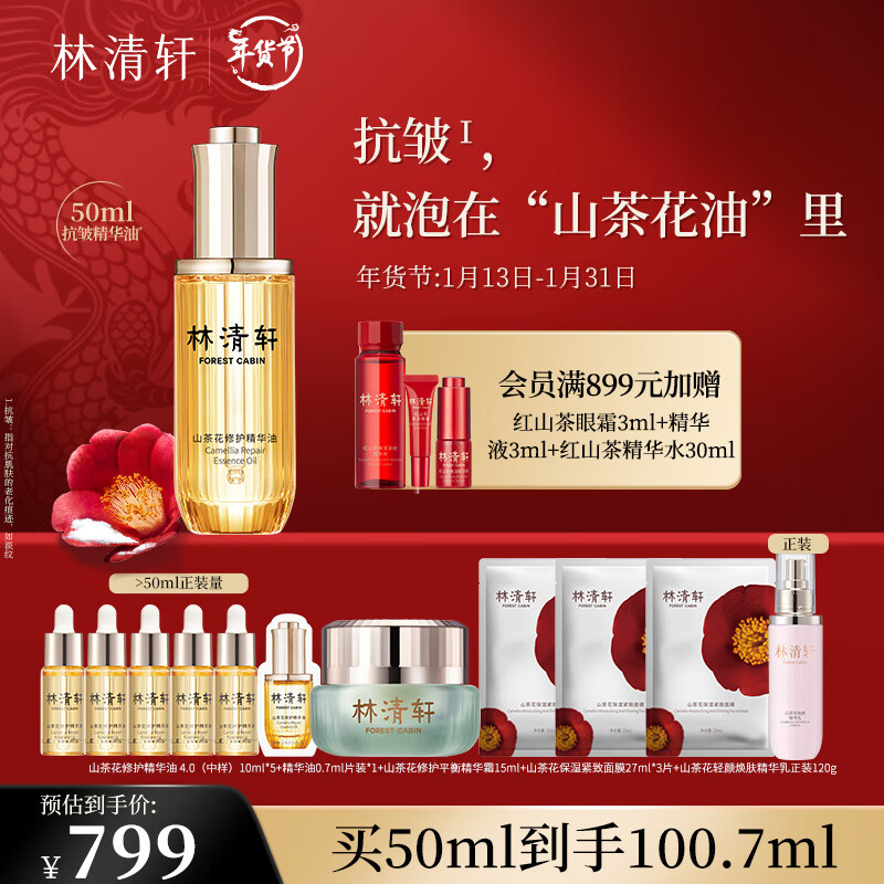林清轩山茶花修护精华油50ml面部护肤以油养肤淡纹抗皱小皇瓶 新年礼物价格:999.00元!