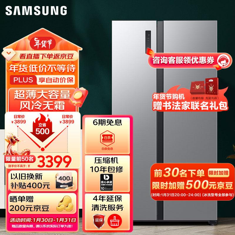 三星(SAMSUNG)516L双开门超薄冰箱变频对开门风冷无霜全环绕气流 家用大容量 智能保鲜 以旧换新 RS52B3000M9/SC价格:3396.00元!