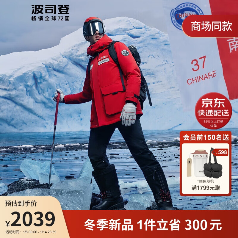 波司登极寒2023冬季鹅绒羽绒服男新年红加厚中长款脱卸帽外套B30142315价格:2339.00元!