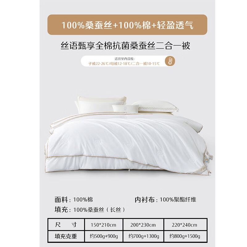 水星家纺A类100%桑蚕丝二合一子母被秋冬加厚被约6.4斤150*210cm价格:3189.00元!