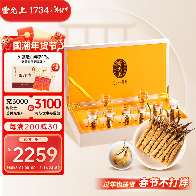 雷允上 冬虫夏草-50/8g 西藏那曲虫草干货礼盒 长辈送礼佳品价格:2649.00元!
