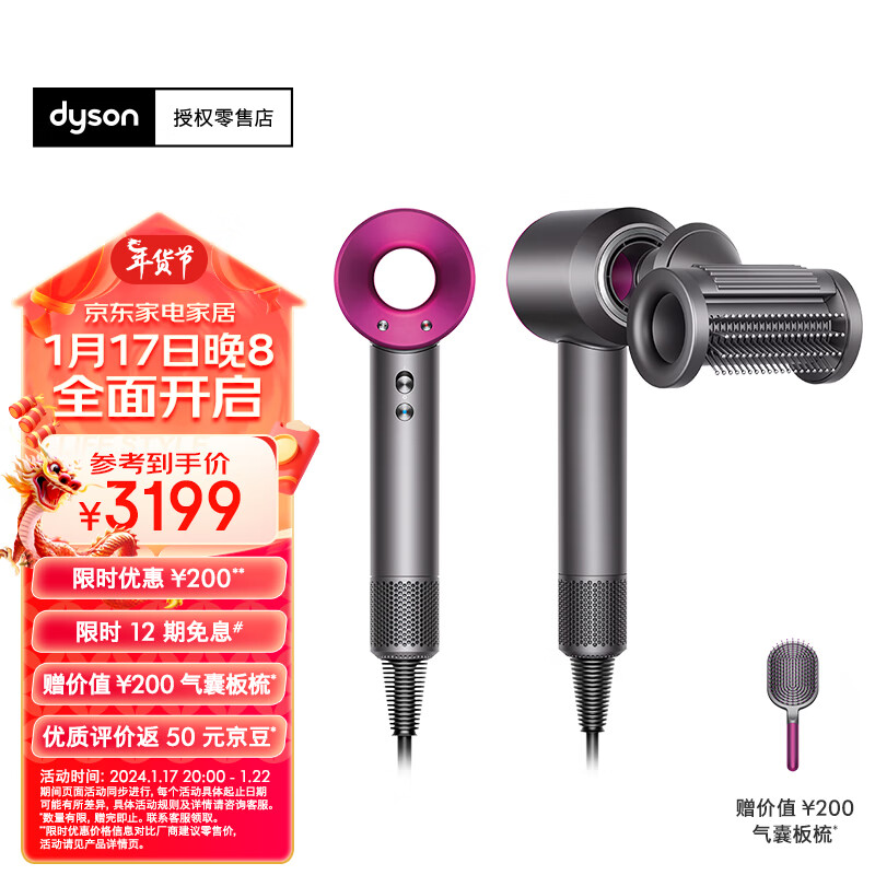 戴森(DYSON)HD15 新一代吹风机 Dyson Supersonic 电吹风 负离子 进口家用 礼物推荐 HD15 紫红色价格:3399.00元!
