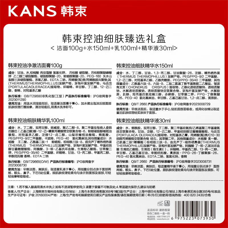 韩束控油细肤甄选礼盒洁水乳精华4件套 平衡水油补水保湿油皮提亮价格:299.00元!