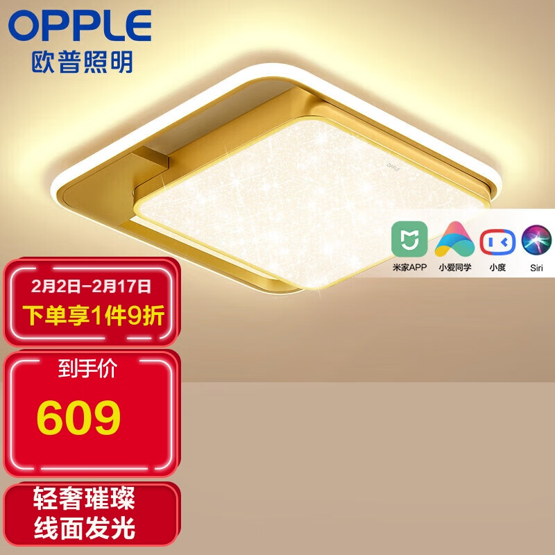 欧普照明(OPPLE)吸顶灯几何现代简约LED客厅卧室餐厅灯具套餐智能语音调光 方卧 MX4848-D55-WTT-01价格:676.00元!