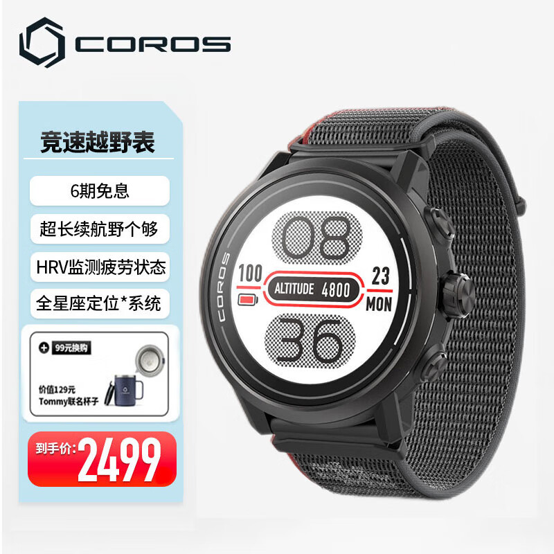 高驰(COROS)APEX 2/APEX 2 Pro越野户外运动竞速表跑步双频定位心率血氧监测价格:2499.00元!