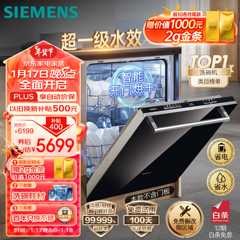 西门子14套全能舱auto洗碗机嵌入式升级款636pro 变频 一级水效 智能烘干 储存 SJ63EX00KC(不含门板)价格:6099.00元!