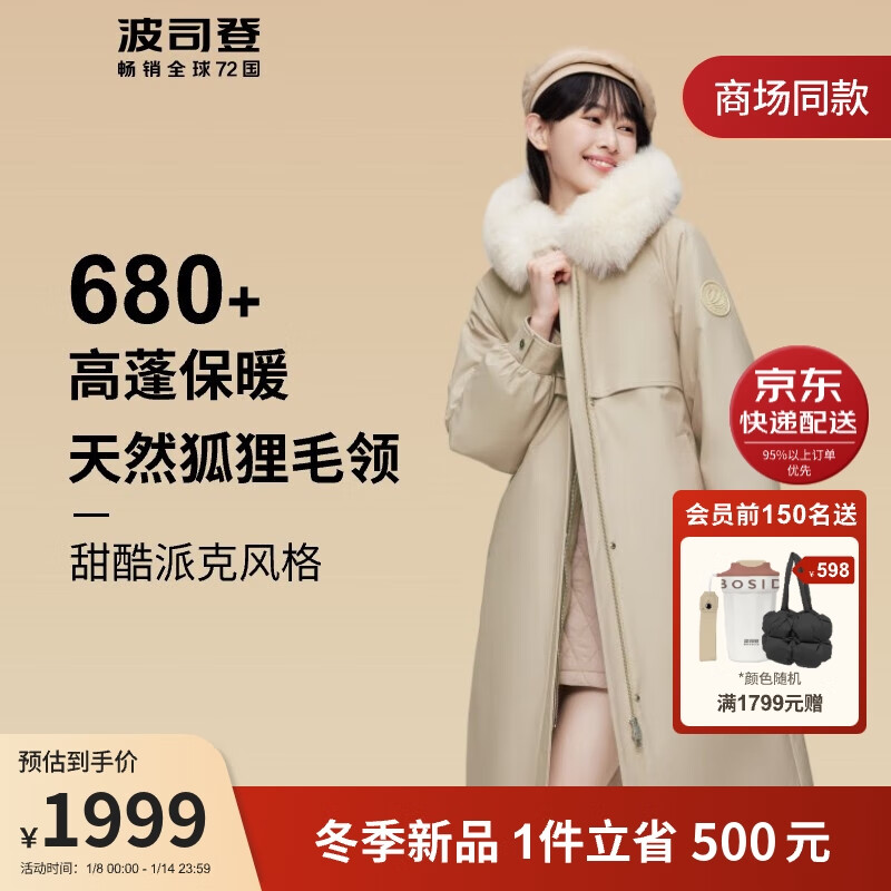 波司登2023冬季羽绒服女加厚长款连帽大毛领收腰显瘦保暖外套B30145512价格:2499.00元!