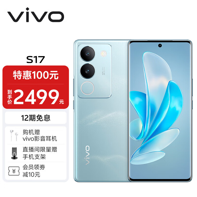 vivo S17 12GB+512GB 山海青 前置5000万广角柔光 后置智慧柔光环 1.5K超视网膜屏 5G 快充 拍照 手机价格:2599.00元!