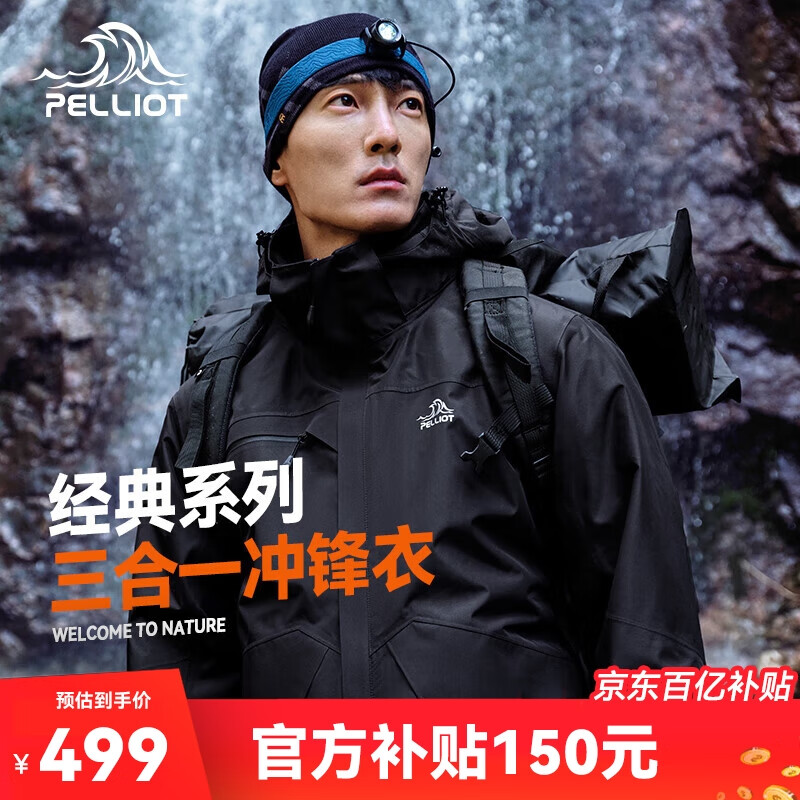伯希和户外冲锋衣男女三合一抓绒防水硬壳夹克登山服外套11040107黑L价格:499.00元!