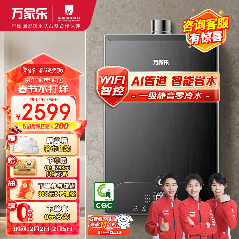 万家乐16升家用燃气热水器天然气一级静音恒温增压零冷水wifi智控防冻JSQ30-16RL10价格:2599.00元!