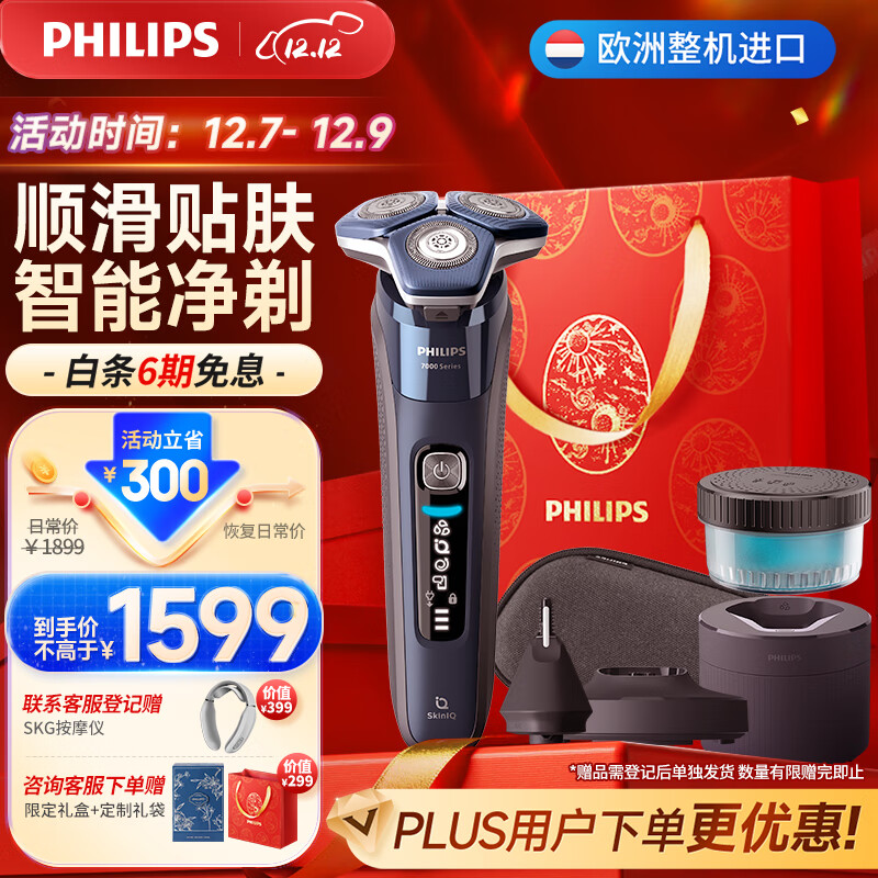 飞利浦(PHILIPS)男士电动剃须刀蜂巢7系Pro+ SkinIQ高端系列刮胡刀 欧洲进口【礼物送男友送爸爸】S7885/53价格:1699.00元!
