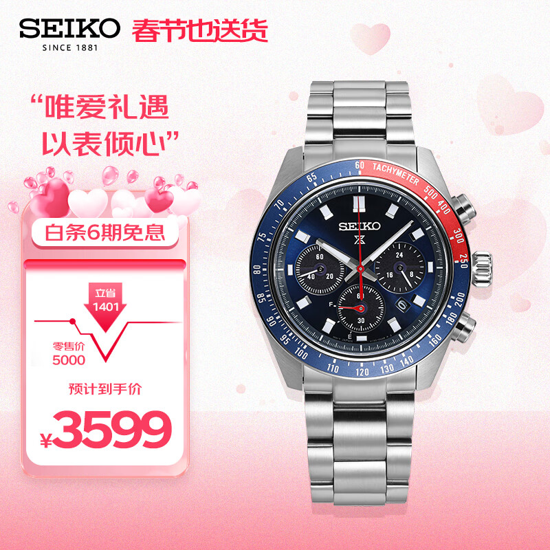 精工(SEIKO)手表 日韩表熊猫迪太阳能夜光男士腕表SSC913P1 生日礼物价格:3599.00元!