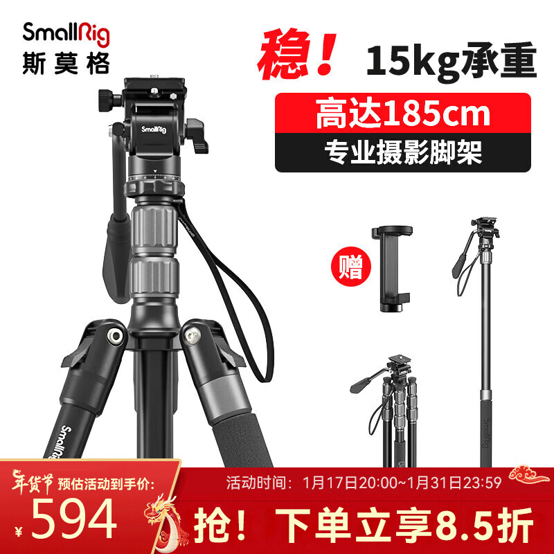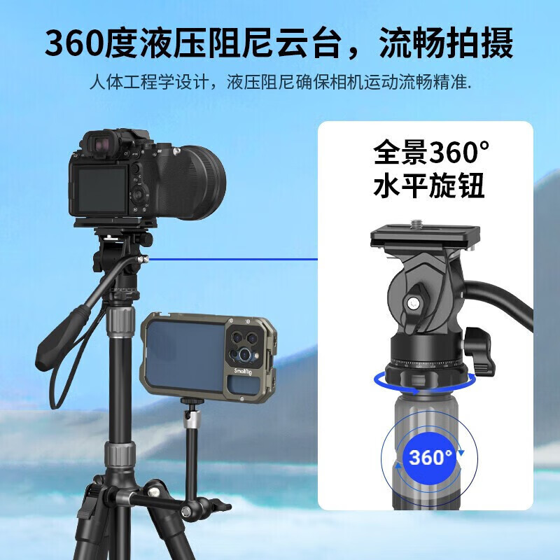 斯莫格SmallRig 3760 摄影三脚架 单反微单相机三脚架云台套装 视频拍摄手机稳定支架直播自拍三角架价格:699.00元!