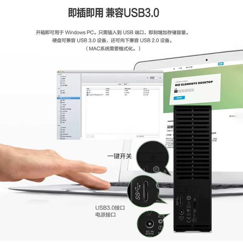 西部数据(WD)Elements 元素系列桌面存储配置参数: