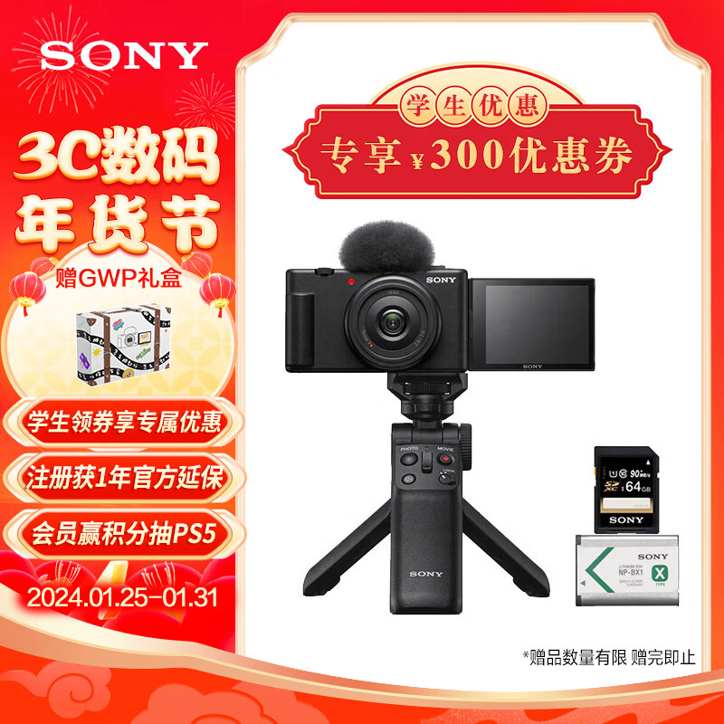 索尼(SONY)ZV-1F数码相机 Vlog/直出滤镜/美肤拍照/大光圈/学生入门/超广角 手柄电池存储卡套装 黑色价格:4049.00元!