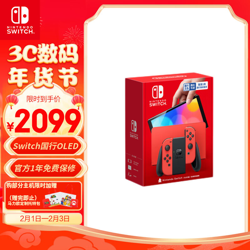 Nintendo Switch任天堂 国行游戏机(OLED版)马力欧限定红色主机[特别设计款式] NS家用体感便携游戏掌上机价格:2099.00元!