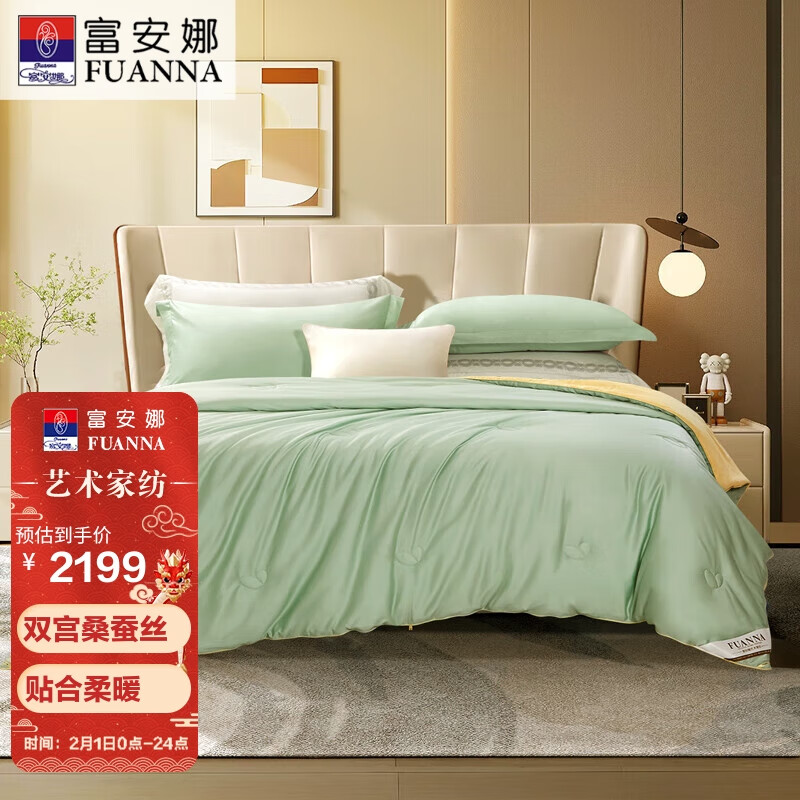 富安娜 沐晴雪 100%桑蚕丝双宫茧 冬被 8.5斤 230*229cm 绿+黄色价格:3599.00元!