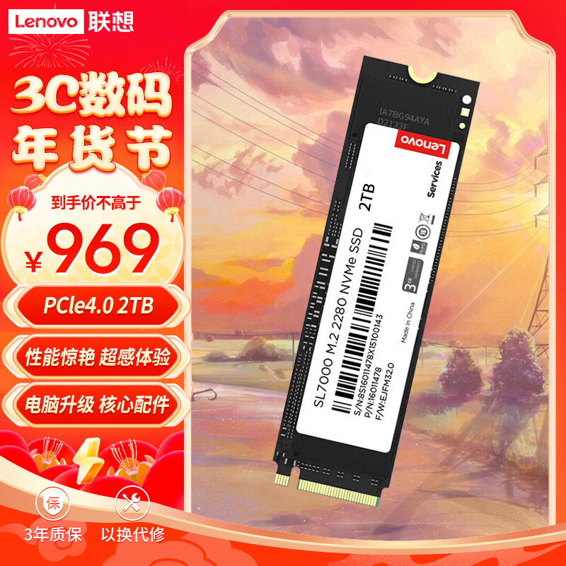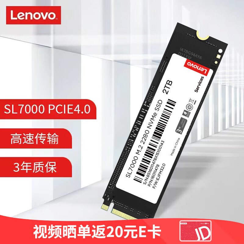 联想(Lenovo) 2TB SSD固态硬盘m.2接口(NVMe协议)pcie4.0 SL7000系列 读速高达5000MB/s价格:969.00元!