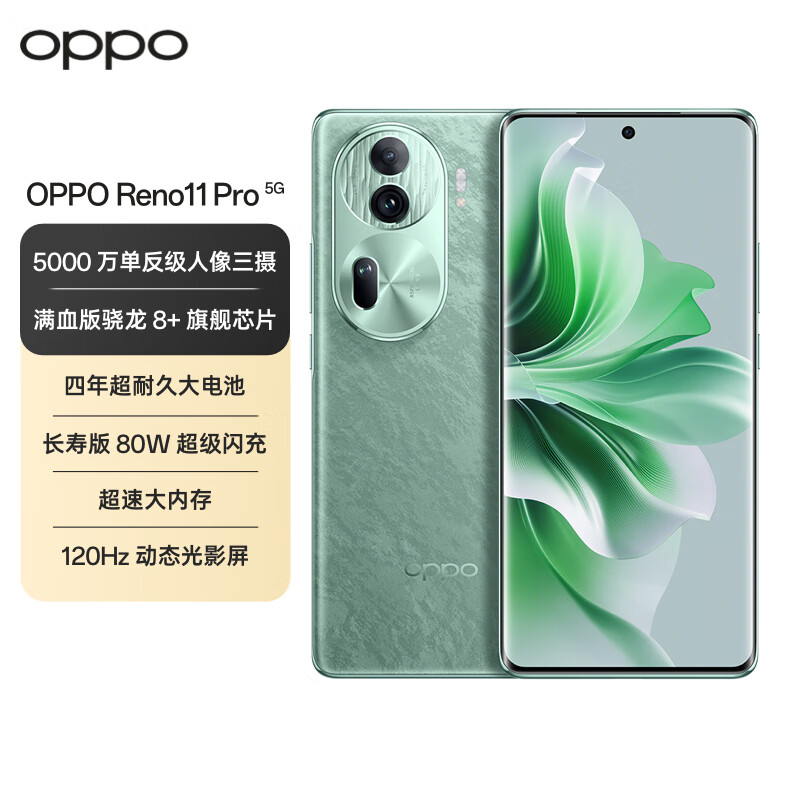 OPPO Reno11 Pro 12GB+256GB 松石绿 单反级人像三摄 骁龙8+旗舰芯 5G拍照手机【80W充电器备用套装】价格:3468.00元!