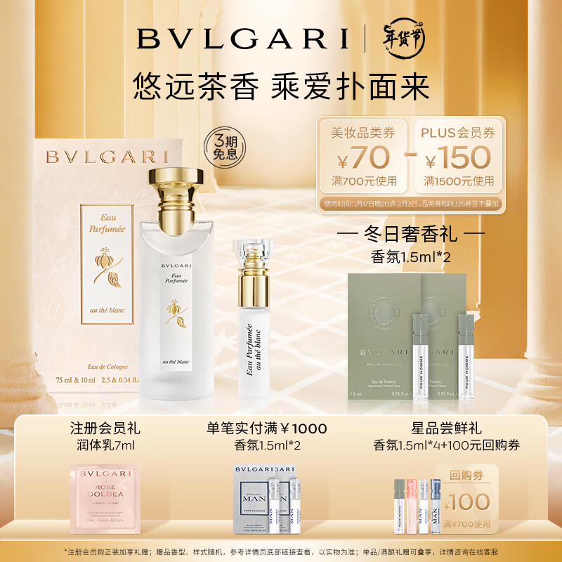 宝格丽(BVLGARI)古龙白茶礼盒 纯净木质调中性香 新年节日生日礼物送男友女友价格:945.00元!