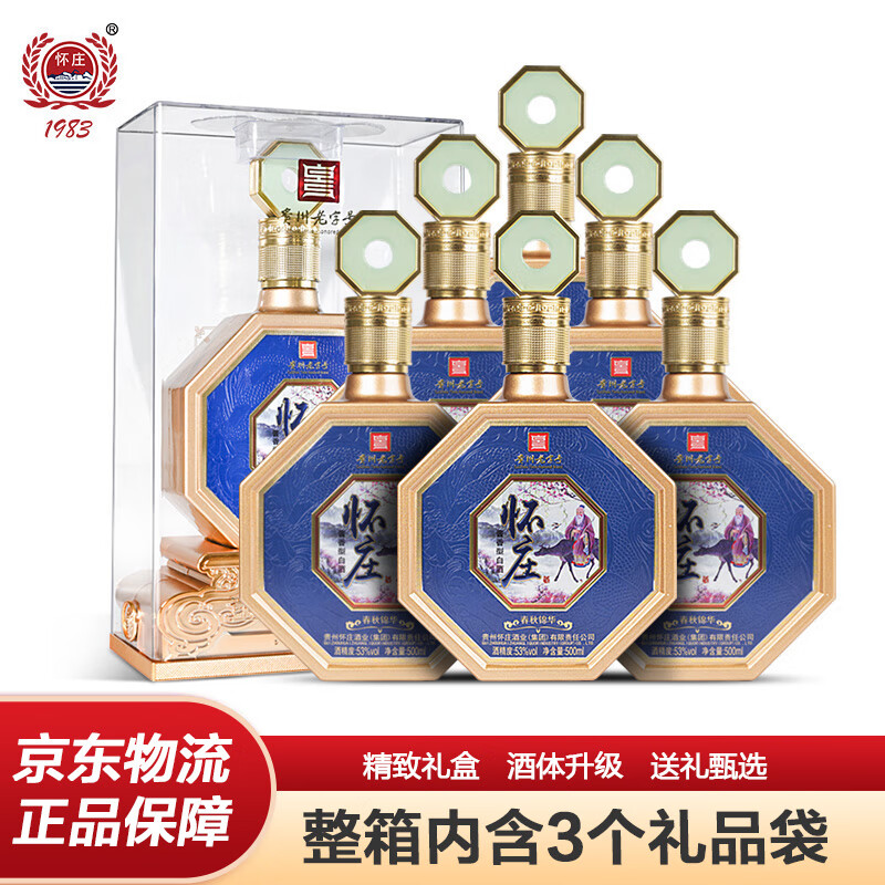 怀庄1983 春秋锦华 酱香型白酒 53度 500mL*6瓶礼盒装 年货送礼价格:518.00元!