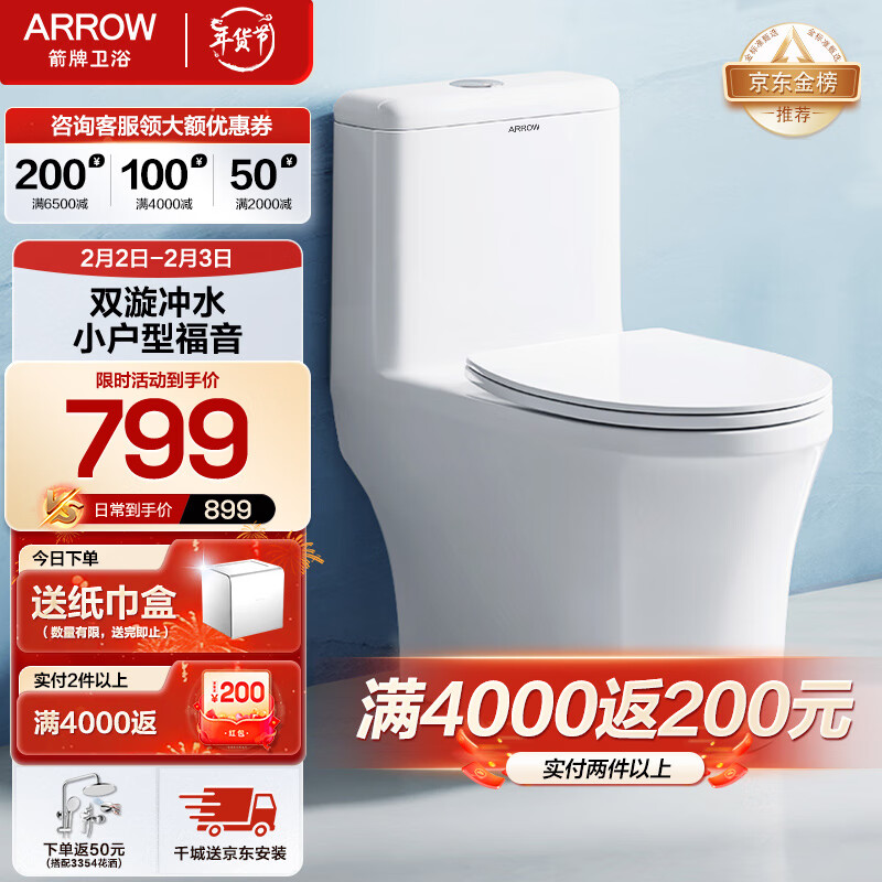 箭牌(ARROW)抽水马桶家用虹吸坐便器小尺寸座便 小户型卫生间坐厕AEB12616L价格:1039.00元!