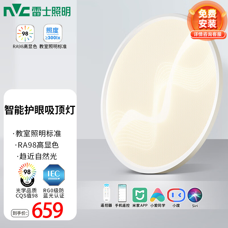 雷士(NVC)LED吸顶灯现代简约客厅卧室书房餐厅灯?流光WHXD60W/F-02价格:659.00元!