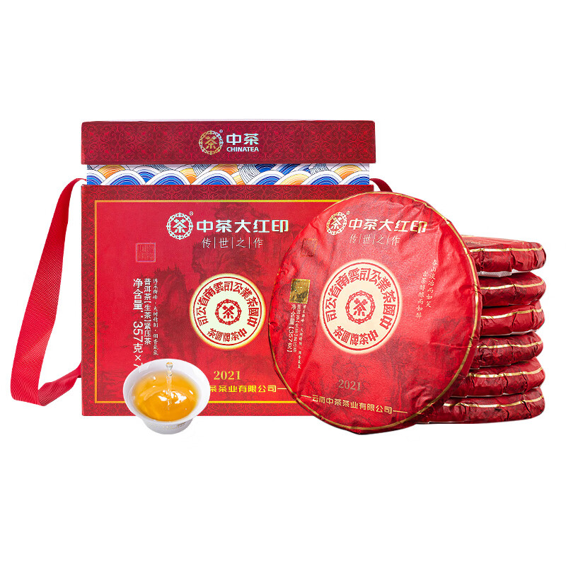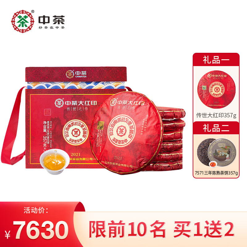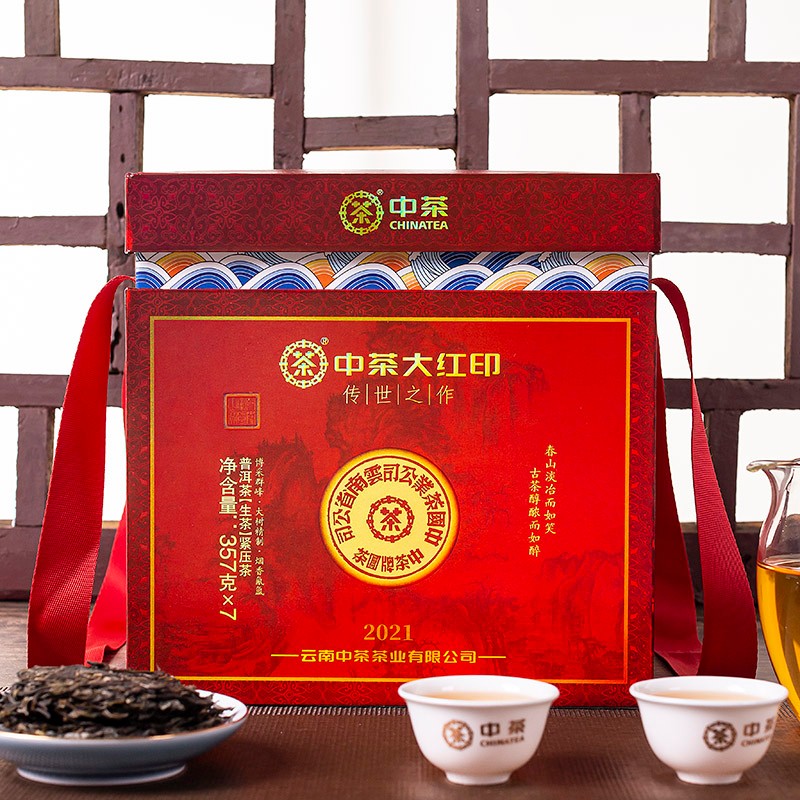 中茶茶叶云南普洱生茶印级经典传世之作2021大红印 357g*7整提装价格:13857.20元!