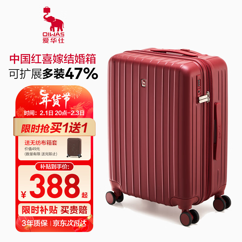 爱华仕行李箱男拉杆箱女大容量陪嫁旅行箱24英寸密码箱可扩展箱中国红价格:388.00元!