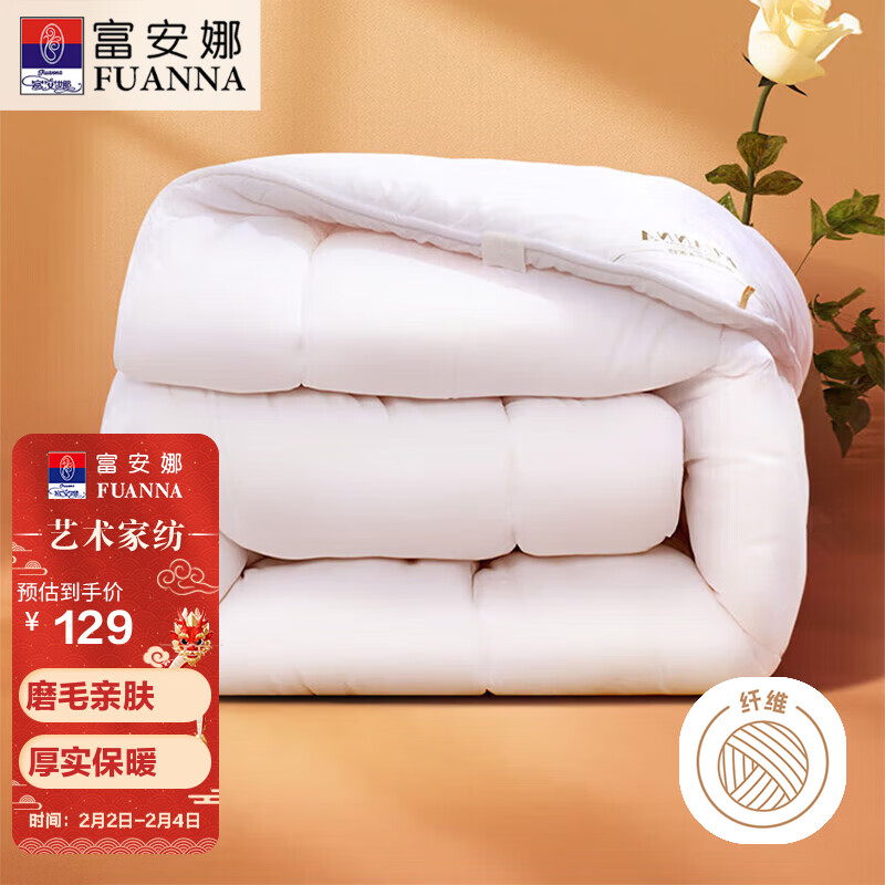 富安娜 舒暖 纤维被子秋冬 磨毛双人冬厚被 7.3斤 230*229cm 白色价格:249.00元!