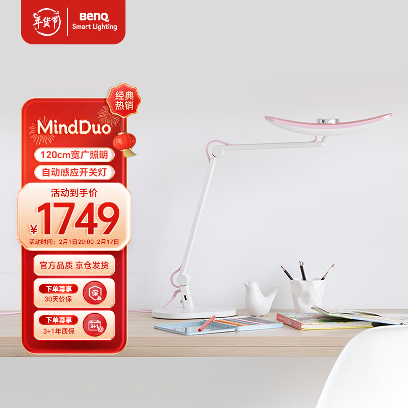 明基(BenQ) MindDuo儿童智能调光阅读学习读写led护眼台灯(樱花粉)价格:1849.00元!