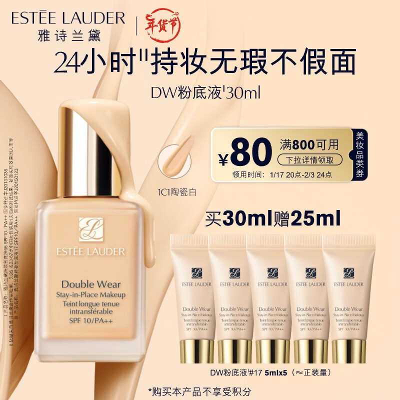 雅诗兰黛DW持妆粉底液66#瓷白色(1C1)30ml遮瑕持久化妆品生日礼物送女友价格:430.00元!
