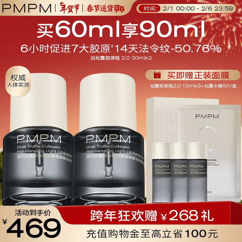 PMPM松露胶原瓶2.0 抗皱紧致淡纹抗皱修护提亮油液精华女30ml*2价格:539.00元!