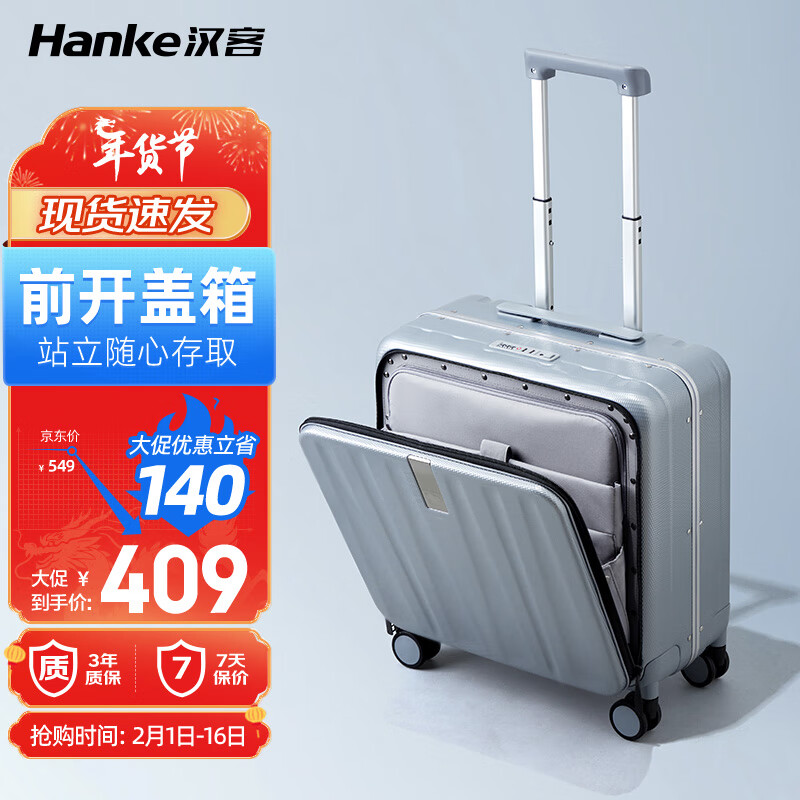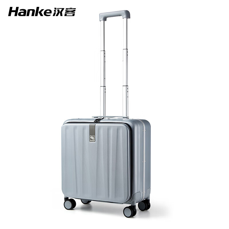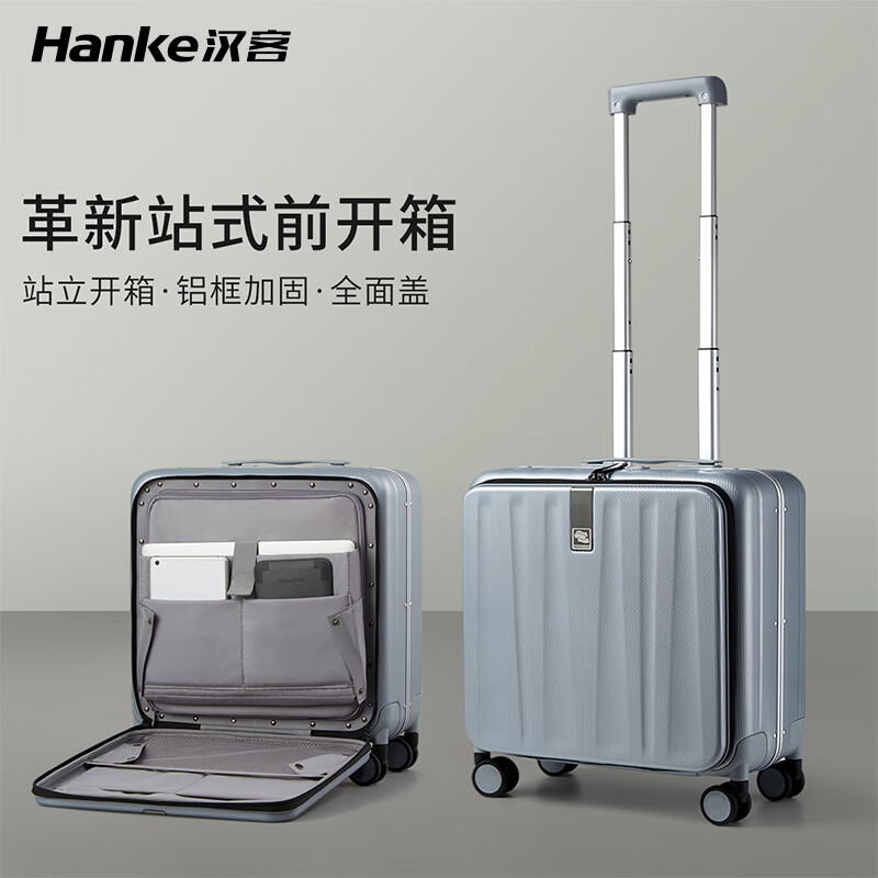 汉客铝框前开盖登机行李箱男18英寸环保灰拉杆箱女密码箱子旅行箱价格:549.00元!